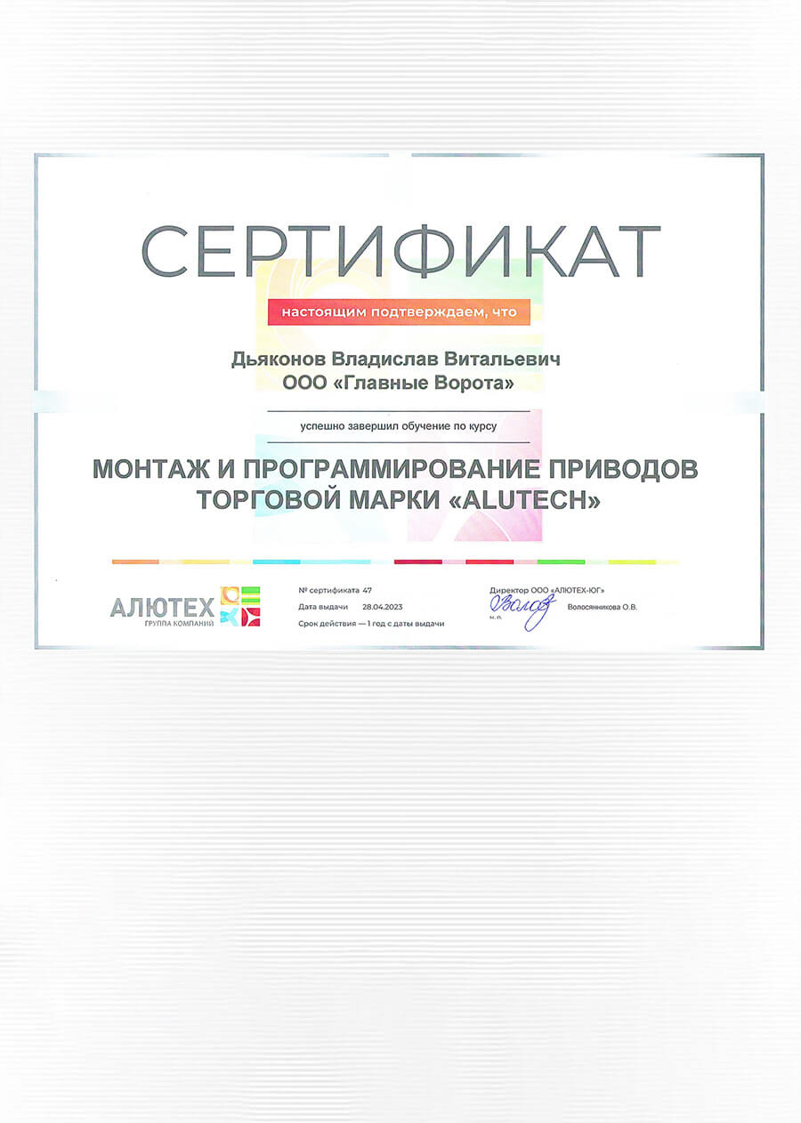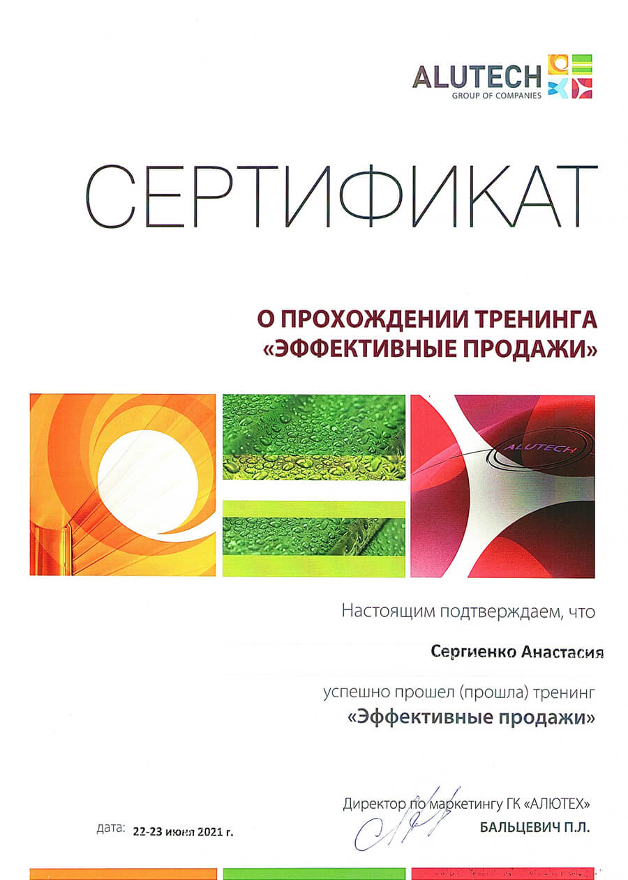 • Эксплуатационные свойства продукции «АЛЮТЕХ» подтверждены сертификатами и протоколами испытаний в аккредитованных международных компаниях.